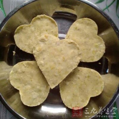 7.把炒好的蠶豆粉放涼後用模具壓成餅狀,擺在盤內即成。