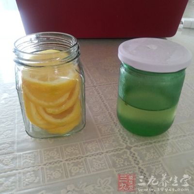 2)檸檬切成兩半,再切成薄片,以一層檸檬,一層蜂蜜的方式放入干淨的玻璃瓶或者是密封瓶中。