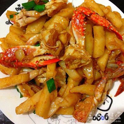 螃蟹肉質細,味道鮮美。含有豐富的維生素A及鈣、磷、鐵等元素,對滋補身體很有益處。但因它性寒,所以每次要少吃點。