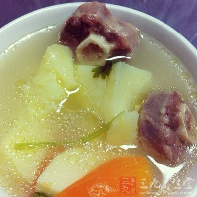 5、少許油炒軟蔬菜,加適量牛尾湯一起炖。
