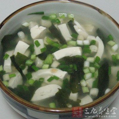海帶含有的鈣、鐵等微量元素和蛋白質、粗纖維也很豐富。有人稱其為人體必需營養素的集合體。豆腐是營養學界公認的健康食品。孕婦在炎熱的夏天,喝一碗豆腐湯不僅能補充營養,還能生津潤燥,增進食欲。