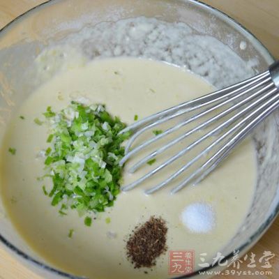 2. 倒入牛奶、少量鹽、糖、雞精攪勻。