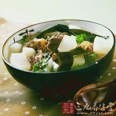 (3)把炖鍋置武火上燒沸,漂去浮沫,再用文火炖煮1小時左右,加入鹽攪拌均勻就可以了。