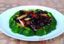 7. 隨即放入芹菜、木耳、鹽、杜仲粉炒至芹菜斷生即成。