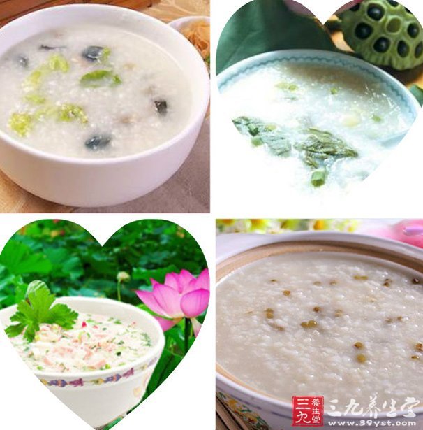 用料:粳米50克,薏仁、扁豆各30克,荷葉、佩蘭各15克。