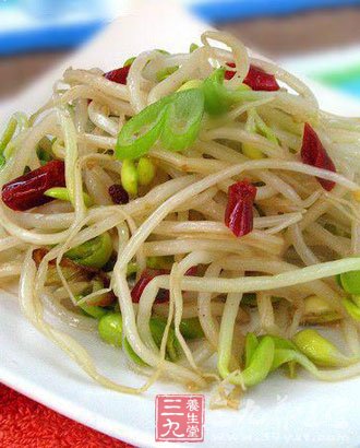 說明:黃豆芽性味甘寒,內含有蛋白質、脂肪和較高的維生素C、胡蘿卜素、礦物質等物質。豆芽含有較多的纖維素,有利減肥。因此,黃豆芽能改善頭發組織,使人保持頭發烏黑發亮。女性多吃黃豆芽可以得到烏發、潤膚、減肥三方面的美容效果。