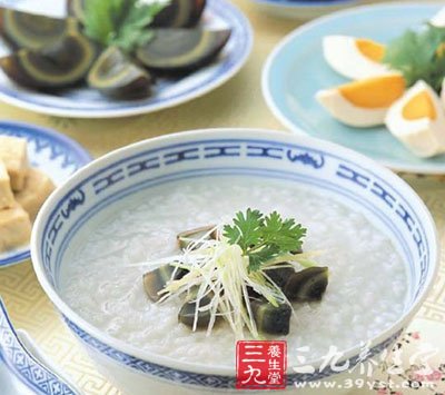 做法:先將雞肉切成小塊,加水煲成濃汁,用濃汁與粳米同煮。待粥將熟時加入切好的皮蛋和煲好的雞肉,加適量的調味品。
