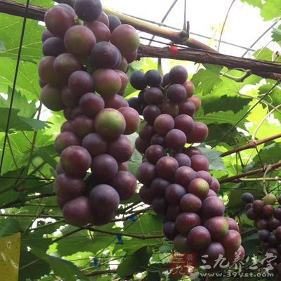 葡萄富含葡萄糖、蛋白質、鈣、磷、鐵、胡蘿卜素、煙酸和維生素B1、B2、C等多種維生素和礦物質。所含物質能補充人體能量,具有補益氣血、生津止渴、強筋骨、利小便等功效。常吃葡萄對神經衰弱及過度疲勞者,頗有好處。葡萄因為其形美味佳,而且營養豐富,歷來被視為“果中之珍”,名列世界四大水果之首。