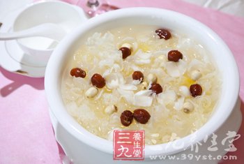 蓮子粥 蓮子20克發脹後,在水中用刷把擦去表層,抽去蓮心沖洗干淨後放入鍋內,加清水在火上煮爛熟,備用。粳米100克同煮,淘洗干淨,放入鍋中加清水煮成薄粥,粥熟後摻入蓮子,熟後加冰糖或白糖再稍炖既可食用。