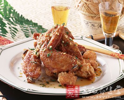 3、鍋入寬油,燒至六成熱(約150度),把腌好的肉排用中火炸2-3分鐘至金黃色。中間油溫過高可關掉煤氣,骨頭浮起炸好後 再開火,用高油溫把肉排中的油分逼出來。炸後皮是脆的,外酥裡嫩,切開後帶點汁。