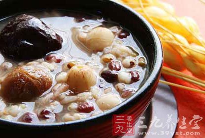 鍋上火,加入水,放入花生仁煮爛,然後倒入淘洗干淨的糯米和適量的水,燒沸後加入紅棗,再改用小火煮至米爛成粥,加入紅糖調勻,出鍋即成。