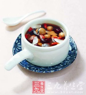 原料:干桂圓30克、大棗50克、紅豆150克、清水1500克。