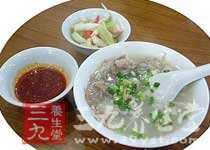 2.沙鍋中放入羊肉塊和水,加入黃酒、姜塊、蔥段,煮沸後撇去浮沫,加蓋炖1.5小時至羊肉熟爛,再加入粉皮炖10分鐘,加鹽、味精調味即可。