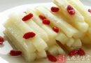 香菇蘿卜湯 白蘿卜500克,水發香菇50克,豌豆苗25克,料酒、精鹽、味精適量,黃豆芽湯1碗。將蘿卜洗淨,去根,切細絲,下沸水鍋中焯至八成熟撈出;將豌豆苗去雜洗淨,下沸水鍋內稍焯撈出;將水發香菇去雜洗淨,切成絲;鍋內加入黃豆芽湯、料酒、精鹽、味精,燒沸後撇淨浮沫,將蘿卜絲、香菇絲分別下鍋燙一下,撈出放在碗內,湯繼續燒沸,放入豌豆苗,起鍋澆在湯碗內,即成。其特點為蘿卜脆嫩,香菇滑潤,豆苗青香。此菜清淡適口,有利於減肥。