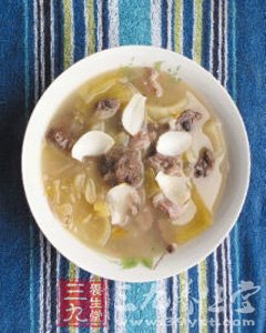 做法:豬肺洗淨切件,杏仁、百合、蜜棗洗淨,所有材料一起放入煲中,武火煲開,文火3小時。